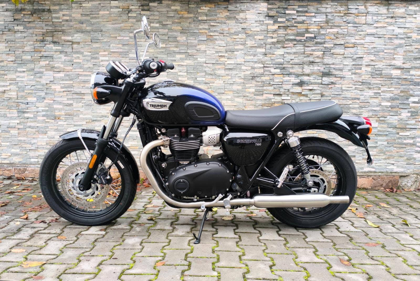 Model Bonneville T100 je ikonická stylová motorka s úžasně vyladěným motorem, silným zátahem v nízkých otáčkách, hladkou pětistupňovou převodovkou a nádherným hlubokým zvukem. Naprostá špička v kategorii moderních klasických motorek a autentická legenda už od 60. let minulého století.